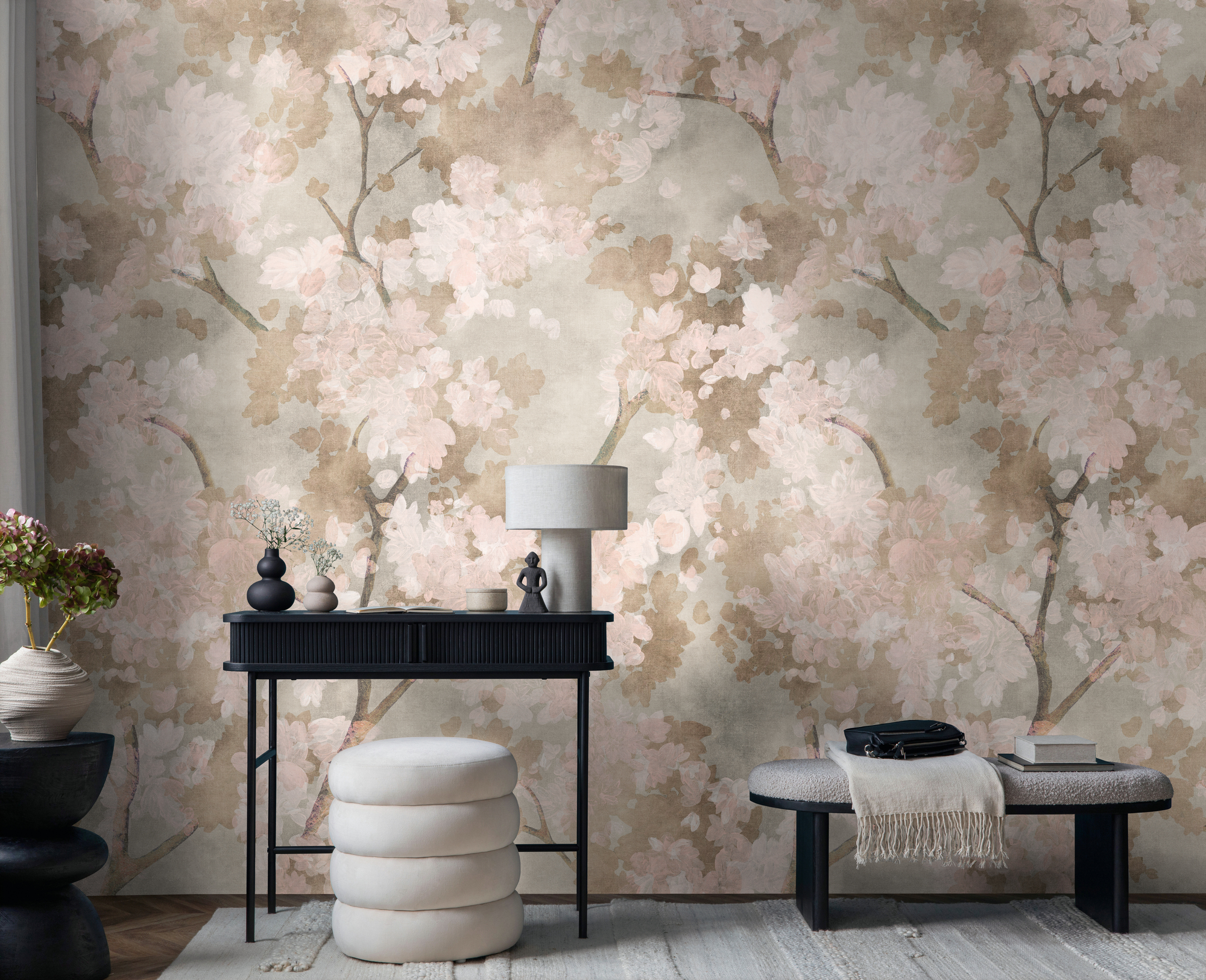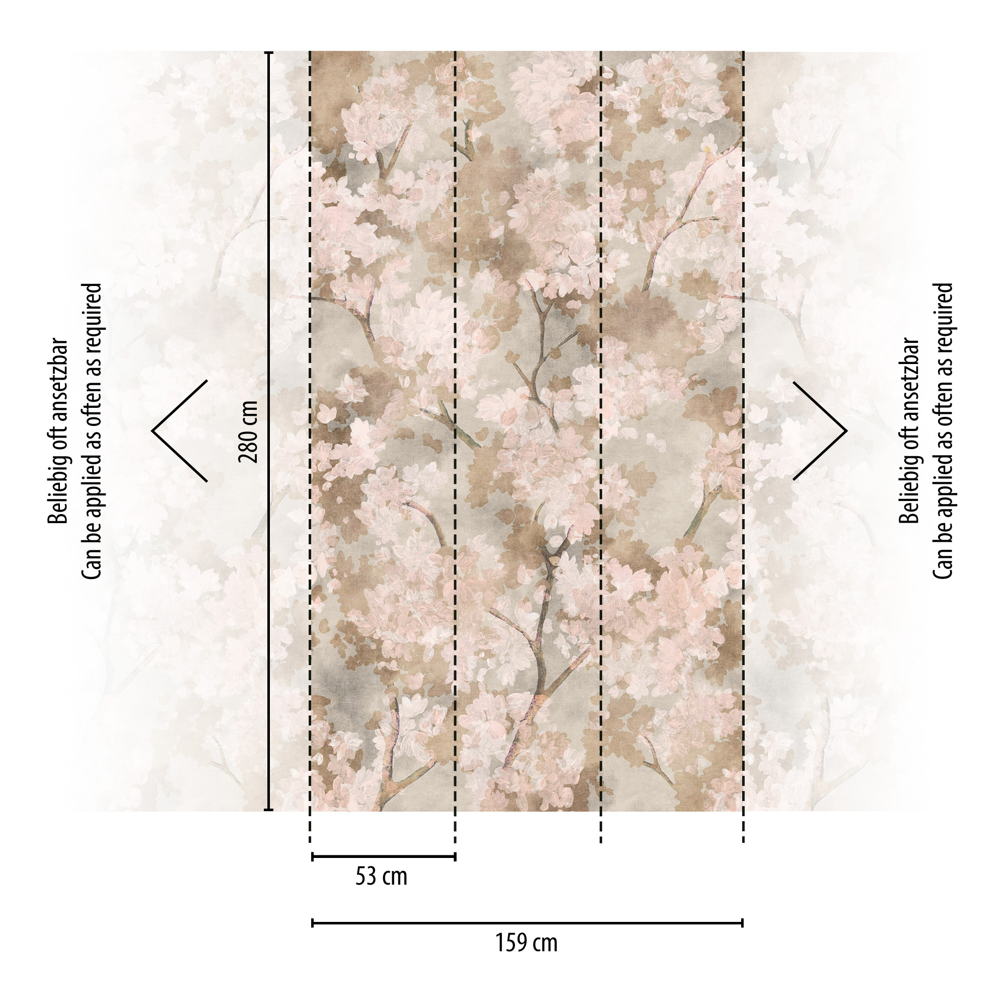 -79248-4 Панно AS Creation 159*280, Ветвь бежево-розовая